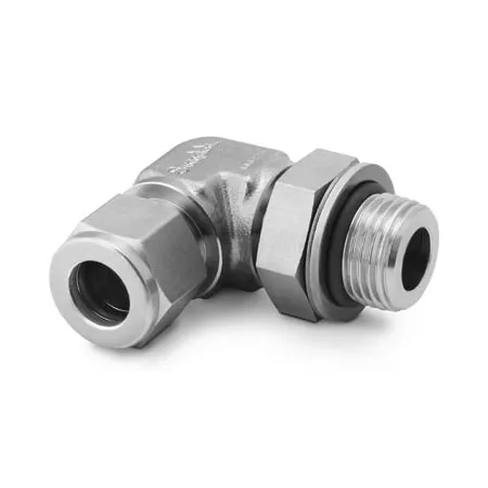 Трубный обжимной фитинг Swagelok из нерж. стали, поворотный угольник с наруж. резьбой, наруж. диам. трубки 3/8 дюйма – наруж. цилиндрическая резьба ISO 1/4 дюймаХарактеристики SS-600-2-4PR