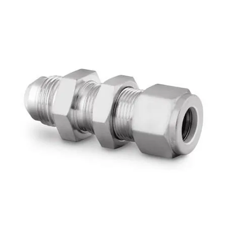 Корпус и обжимные элементы выполнены из нержавеющей стали AISI 316, общий материал — нержавеющая сталь, что обеспечивает коррозионную стойкость в агрессивных средах и совместимость с нефтехимией, водородом и экологически чистыми газами. Исполнение — панельный соединитель с двумя обжимными кольцами и гайкой; тип уплотнения резьбы отсутствует (герметизация — обжим трубки и торцовое уплотнение 37°). Рабочие среды: инертные и агрессивные газы, жидкости и гидравлические масла. Рабочий диапазон температур типично — от −54 °C до +204 °C для металлического соединения; рабочее давление зависит от материала и толщины стенки трубки и может достигать порядка 690 бар (10 000 psi) при применении рекомендованной нержавеющей трубки и корректной сборке.