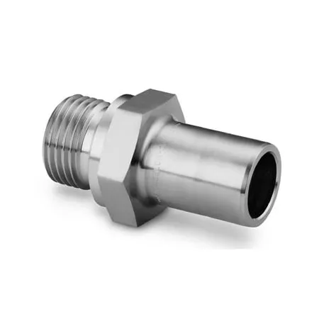 Трубный обжимной фитинг Swagelok из нерж. стали, трубный переходник с наруж. резьбой, наруж. диам. трубки 1/2 дюйма – наруж. цилиндрическая резьба ISO 1/2 дюйма, прямой буртикХарактеристики SS-8-TA-1-8RS