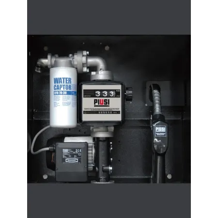 Заправочный блок, оснащённый насосом, расходомером, фильтром и металлическим защитным корпусом с замком. В комплектацию входят также антистатический шланг для выдачи дизельного топлива и автоматический топливораздаточный кран. Модель Pro укомплектована электронным блоком управления и контроля доступов (Access 85), кнопкой аварийного останова и держателем крана с автоматическим выключателем насоса. Access 85 позволяет контролировать доступ пользователей посредством пользовательских ключей и подключать датчик уровня для блокировки отпуска топлива при слишком низком уровне в резервуаре. Защитный таймер отключает насос по истечении 10 минут. Модель Pro поставляется с 4 предварительно настроенными Ключами.