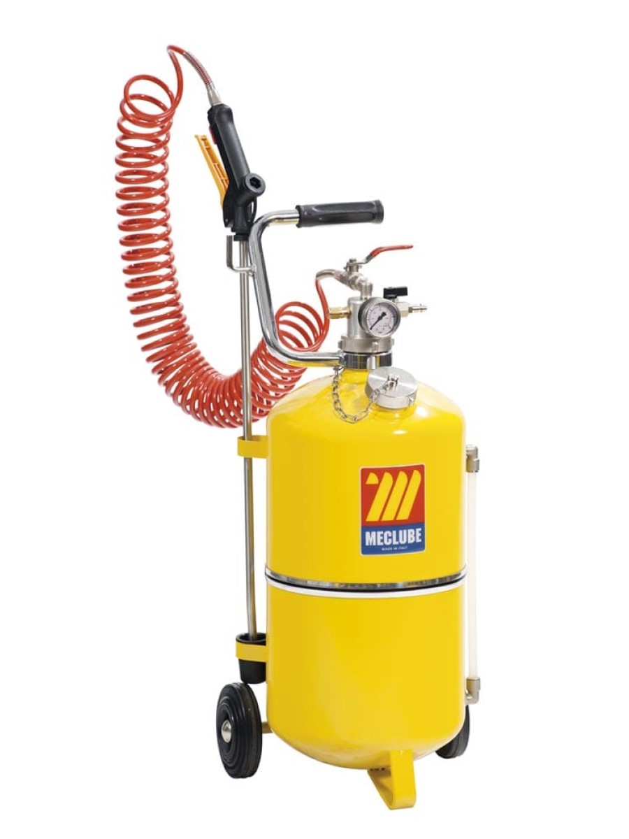 Спреер 24 л из окрашенной стали. Предназначен для работы с агрессивными и химическими жидкостями. При заполнении бака на 3/4 от всего объема и установлении давления 6-8 бар, оборудование может работать автомномно без компрессора.