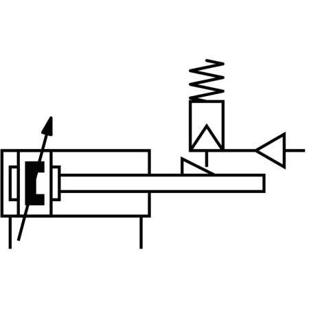 Пневмоцилиндр с пружиной в штоковой полости (на изображении выше) и нормально втянутым штоком называется толкающим. При расположении пружины в противоположной, поршневой полости, шток будет нормально выдвинутым, а пневмоцилиндр – тянущим.