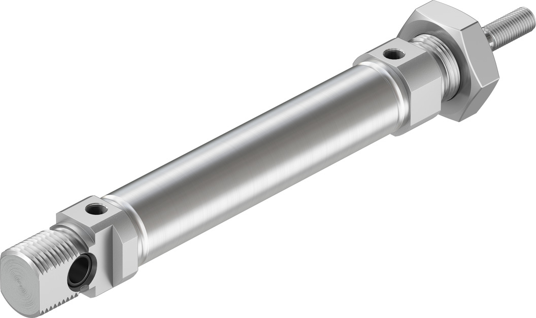 Цилиндры одностороннего действия имеют только одно отверстие пневматического подключения. Движение под действием сжатого воздуха осуществляется в одну сторону, возврат осуществляется при помощи пружины. Таким образом, для управления таким цилиндром требуется всего один пневматический сигнал.