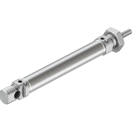 Цилиндры одностороннего действия имеют только одно отверстие пневматического подключения. Движение под действием сжатого воздуха осуществляется в одну сторону, возврат осуществляется при помощи пружины. Таким образом, для управления таким цилиндром требуется всего один пневматический сигнал.