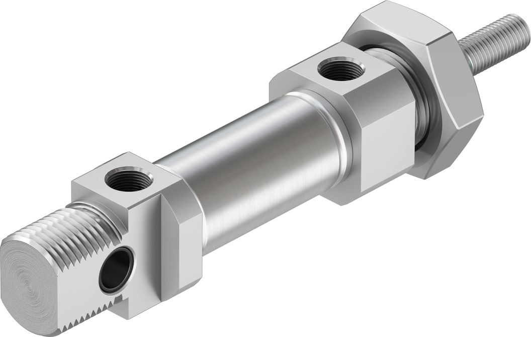 Цилиндры одностороннего действия имеют только одно отверстие пневматического подключения. Движение под действием сжатого воздуха осуществляется в одну сторону, возврат осуществляется при помощи пружины. Таким образом, для управления таким цилиндром требуется всего один пневматический сигнал.