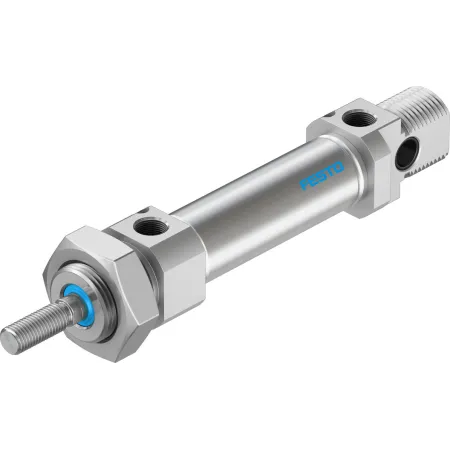 Цилиндры одностороннего действия имеют только одно отверстие пневматического подключения. Движение под действием сжатого воздуха осуществляется в одну сторону, возврат осуществляется при помощи пружины. Таким образом, для управления таким цилиндром требуется всего один пневматический сигнал.