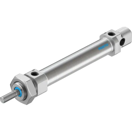Цилиндры одностороннего действия имеют только одно отверстие пневматического подключения. Движение под действием сжатого воздуха осуществляется в одну сторону, возврат осуществляется при помощи пружины. Таким образом, для управления таким цилиндром требуется всего один пневматический сигнал.