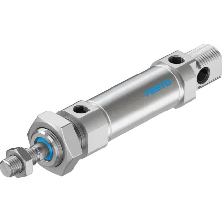 Цилиндры одностороннего действия имеют только одно отверстие пневматического подключения. Движение под действием сжатого воздуха осуществляется в одну сторону, возврат осуществляется при помощи пружины. Таким образом, для управления таким цилиндром требуется всего один пневматический сигнал.