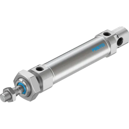 Цилиндры одностороннего действия имеют только одно отверстие пневматического подключения. Движение под действием сжатого воздуха осуществляется в одну сторону, возврат осуществляется при помощи пружины. Таким образом, для управления таким цилиндром требуется всего один пневматический сигнал.