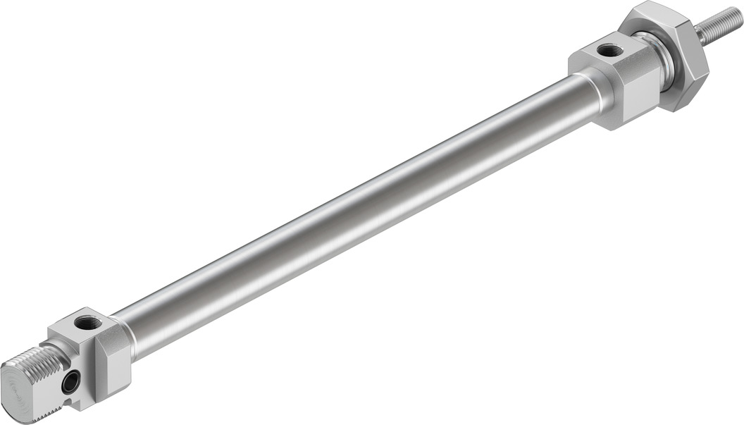 Цилиндры одностороннего действия имеют только одно отверстие пневматического подключения. Движение под действием сжатого воздуха осуществляется в одну сторону, возврат осуществляется при помощи пружины. Таким образом, для управления таким цилиндром требуется всего один пневматический сигнал.