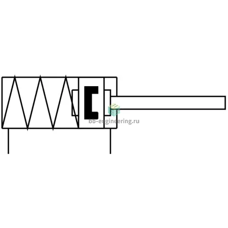Пневмоцилиндр с пружиной в штоковой полости (на изображении выше) и нормально втянутым штоком называется толкающим. При расположении пружины в противоположной, поршневой полости, шток будет нормально выдвинутым, а пневмоцилиндр – тянущим.