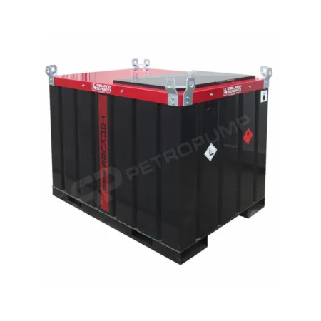 Резервуар цилиндрической формы из углеродистой стали, герметично электросваренный, покрашенный порошковой краской после обработки пескоструем, содержащийся в герметичном металлическом запираемом контейнере, который может вместить 110% от номинального объёма резервуара и имеющий функцию сбора при утечке или проливе топлива.
