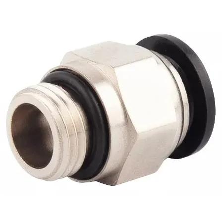 Форма фитинга: штуцер прямой с нар. резьбой • Подключение: G1/4-12 мм • Материал корпуса: латунь никелированная • Цвет: черный