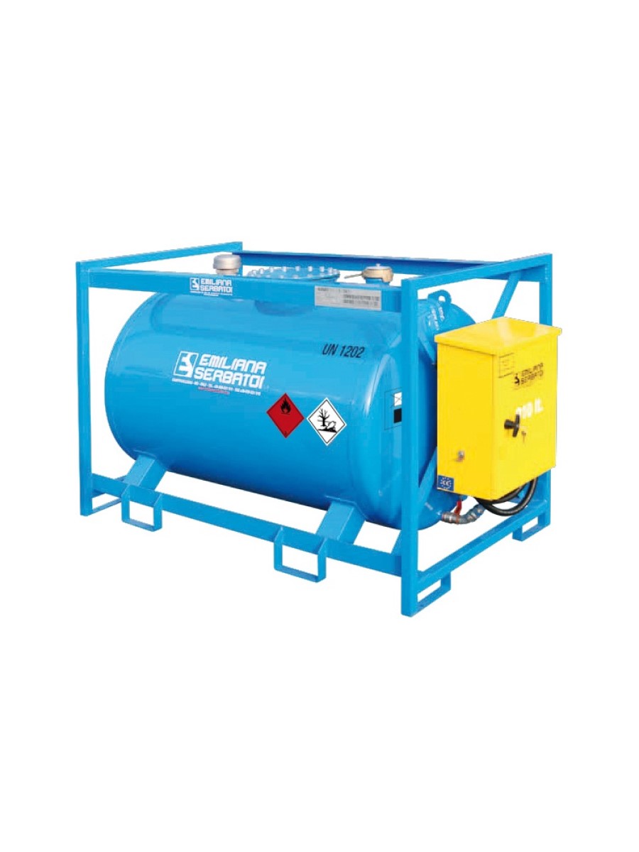 Передвижной резервуар TRASPO® изготовлен из углеродистой стали, герметично электро-сварен и оснащён внешней защитной металлической рамой.