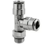 Форма фитинга: тройник T-образный с нар. резьбой угловой поворотный • Подключение: G3/8-12 мм • Материал корпуса: латунь никелированная