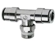 Форма фитинга: тройник T-образный с нар. резьбой осевой поворотный • Подключение: G1/4-5 мм • Материал корпуса: латунь никелированная