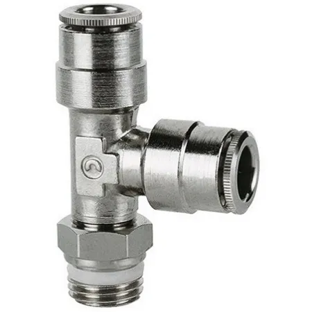 Форма фитинга: тройник T-образный с нар. резьбой угловой поворотный • Подключение: G1/8-5 мм • Материал корпуса: латунь никелированная