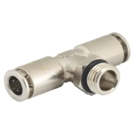 Форма фитинга: тройник T-образный с нар. резьбой осевой поворотный • Подключение: G1/4-8 мм • Материал корпуса: латунь никелированная