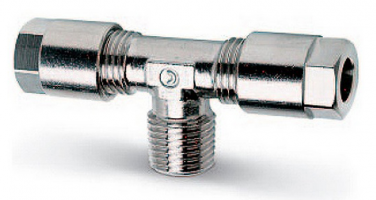 Форма фитинга: тройник T-образный с нар. резьбой осевой • Подключение: R1/4-8 мм • Материал корпуса: латунь никелированная