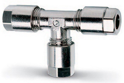 Форма фитинга: тройник T-образный • Подключение: 8 мм • Материал корпуса: латунь никелированная