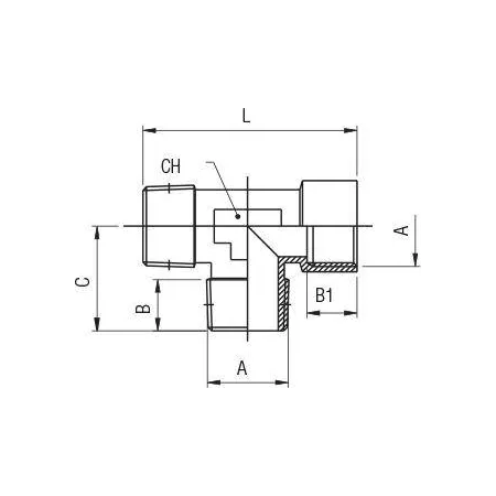 ТРОЙНИК ПЕРЕХОДНОЙ С НАР. РЕЗЬБОЙ И ВНУТР. РЕЗЬБОЙ НА ПРЯМОМ УЧАСТКЕ AIGNEP 04030000109NT