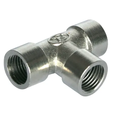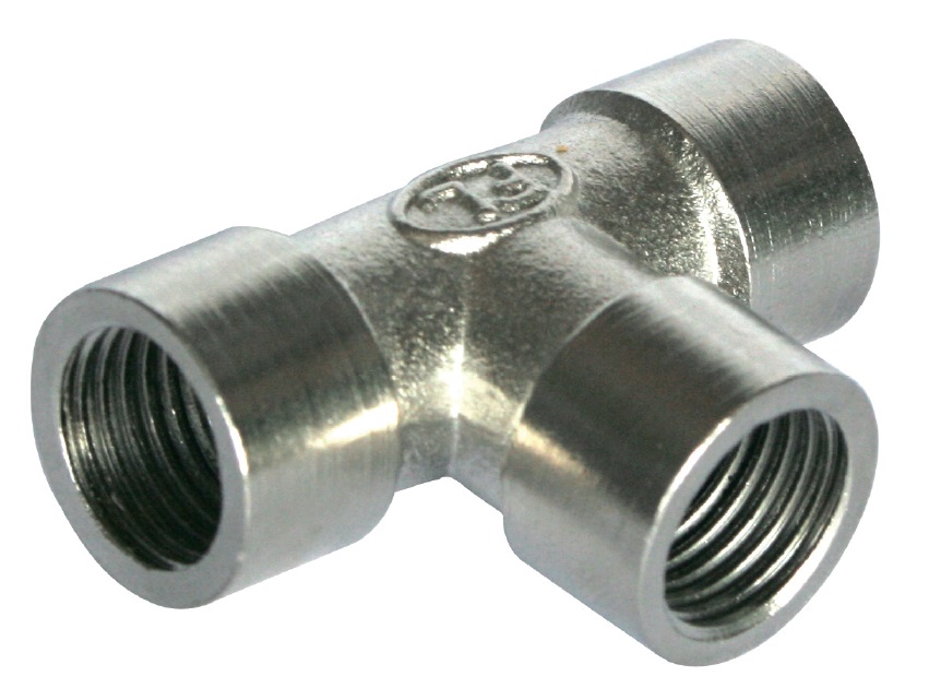 Форма фитинга: тройник T-образный с внутр. резьбой осевой • Подключение: G1/2 • Материал корпуса: латунь никелированная