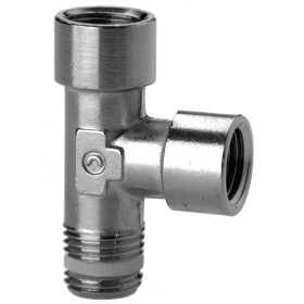 Форма фитинга: тройник T-образный с внутр.-нар. резьбой угловой • Подключение: R3/8 • Материал корпуса: латунь никелированная