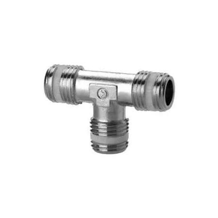 Форма фитинга: тройник T-образный с нар. резьбой • Подключение: R3/8 • Материал корпуса: латунь никелированная