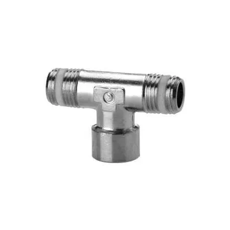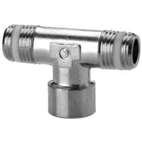 Форма фитинга: тройник T-образный с нар.-внутр. резьбой осевой • Подключение: G1/2-R1/2 • Материал корпуса: латунь никелированная