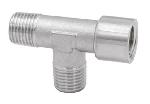 Форма фитинга: тройник T-образный с нар.-внутр. резьбой угловой • Подключение: G3/8-R3/8 • Материал корпуса: сталь нержавеющая AISI 316