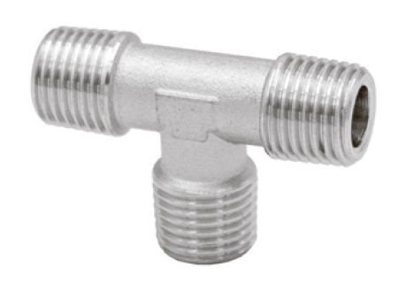 Форма фитинга: тройник T-образный с нар. резьбой • Подключение: M5 • Материал корпуса: сталь нержавеющая AISI 316