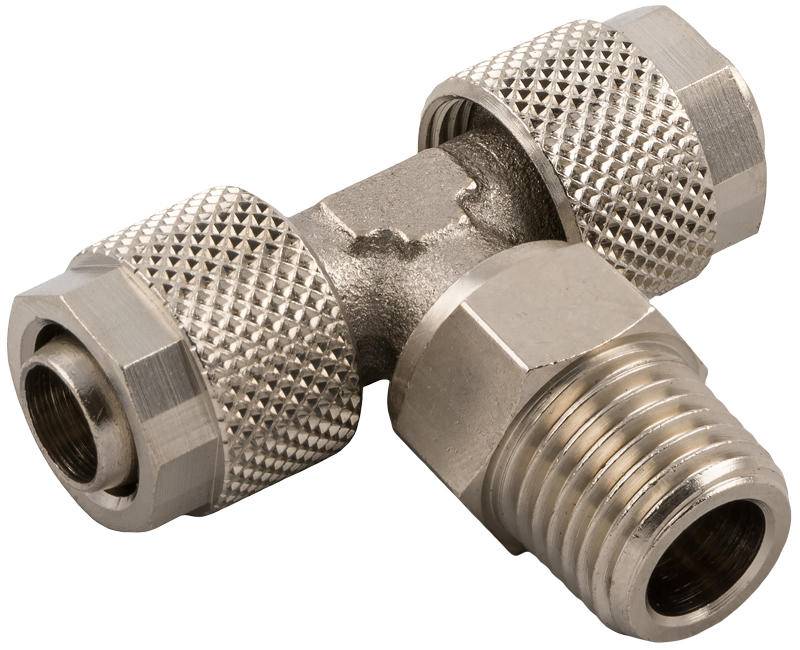 01210 00 005 AIGNEP - Тройник T-образный с нар. резьбой осевой с накидной гайкой R1/4-10/8 мм