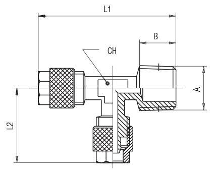 01220 00 002 AIGNEP - Тройник T-образный с нар. резьбой угловой с накидной гайкой R1/8-6/4 мм