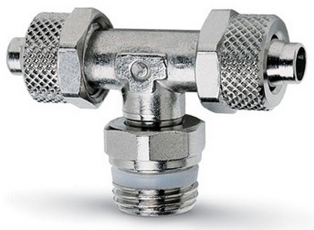 1431 6/4-1/4 CAMOZZI - Тройник T-образный с серьгой с нар./внутр. резьбой с накидной гайкой G1/4-6/4 мм