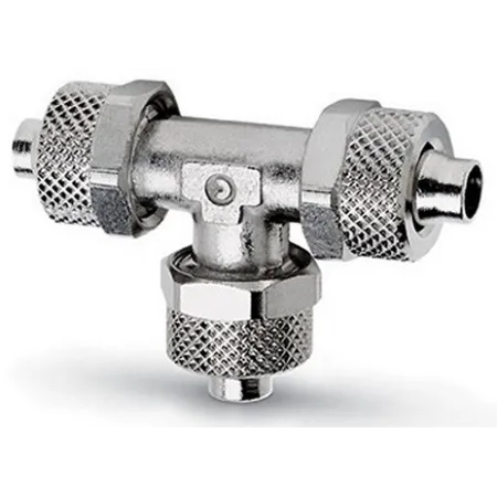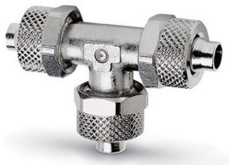 Форма фитинга: тройник T-образный • Подключение: 6/4 мм • Материал корпуса: латунь никелированная