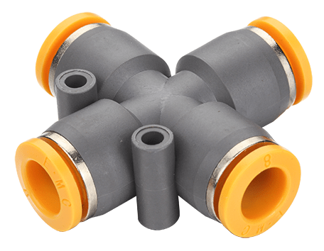 Форма фитинга: крестовина X-образная • Подключение: 8 мм • Материал корпуса: полибутилентерефталат (PBT) • Цвет: оранжевый
