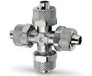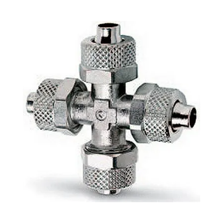 Форма фитинга: крестовина X-образная • Подключение: 8/6 мм • Материал корпуса: латунь никелированная