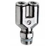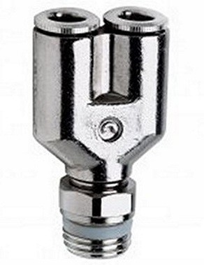 Форма фитинга: тройник Y-образный с нар. резьбой поворотный • Подключение: M5-4 мм • Материал корпуса: латунь никелированная