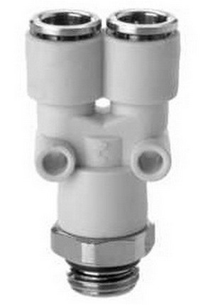 Форма фитинга: тройник Y-образный с нар. резьбой • Подключение: G1/4-10 мм • Материал корпуса: полибутилентерефталат (PBT)
