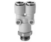 Форма фитинга: тройник Y-образный с нар. резьбой • Подключение: G3/8-10 мм • Материал корпуса: полибутилентерефталат (PBT)