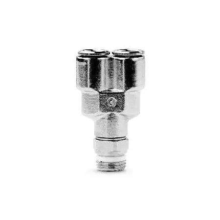 Форма фитинга: тройник Y-образный с нар. резьбой поворотный • Подключение: G1/8-8 мм • Материал корпуса: латунь никелированная