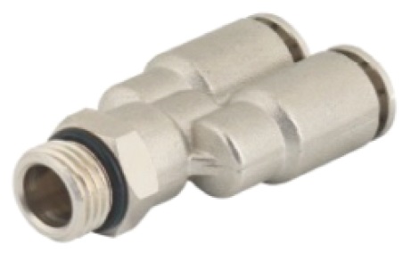 Форма фитинга: тройник Y-образный с нар. резьбой • Подключение: G1/8-6 мм • Материал корпуса: латунь никелированная