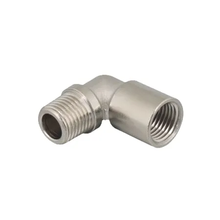Форма фитинга: соединитель угловой с внутр.-нар. резьбой • Подключение: G1/2-R1/4 • Материал корпуса: латунь никелированная