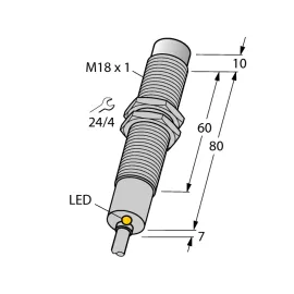 Дискретный выходНО, PNP Тип установкизаподлицо Номинальная дистанция переключения5 Электрическое подключениекабель Крепежная резьбаM18x1 Корпусметалл ПроизводительTURCK