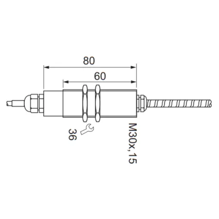 Диапазон измерения: 6000 мм • Электрическое подключение: кабель • Длина кабеля: 5м • Крепежная резьба: M30x1.5 • Класс защиты: IP67 • Материал корпуса: латунь никелированная
