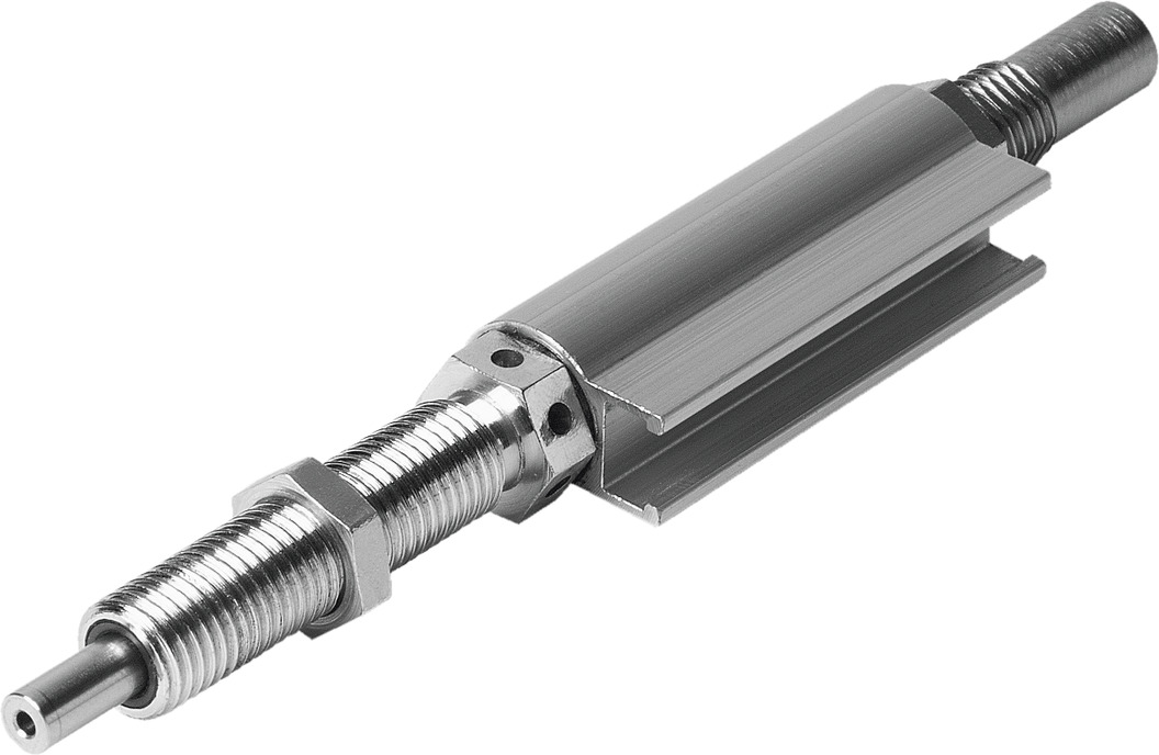 Кинетическая энергия физического тела вычисляется по формуле J=(m•V2)/2. Как видно, энергия линейно зависит от движущейся массы и квадратично – от скорости. При движении пневмопривода происходит перемещение не только массы, прикрепленной к его рабочему элементу (каретке или штоку), но также и массы движущихся частей самого пневмопривода. Повлиять на массу, к сожалению, в большинстве случает невозможно. При высокой динамике или высокой перемещаемой массе кинетическая энергия может оказаться настолько высокой, что приведет к существенному сокращению срока службы или выходу из строя пневмопривода. Для избежания подобных ситуаций применяют различные способы снижения скорости при подходе к конечному положению, например: