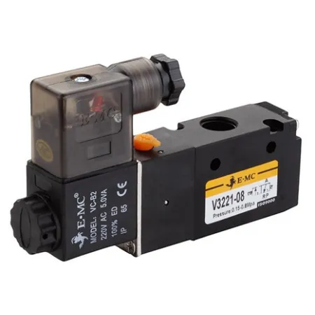 3/2 распределитель с электромагнитным управлением и пилотным каскадом.