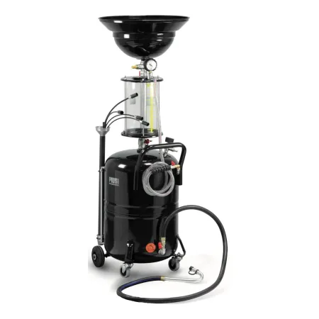 Тележечный регенераторы отработанного масла в первую очередь предназначенные для применения под мостом, при выполнении всех операций, при которых рекуперация масла мотора/передачи/дифференциала происходит гравитационным методом. Резервуар высокой вместимости с решеткой для стока фильтров и регулируемой высотой уставлен сбоку приемного бака емкостью 80 л. Слив данного бака происходит пневматически с помощью специального входного клапана для сжатого воздуха.