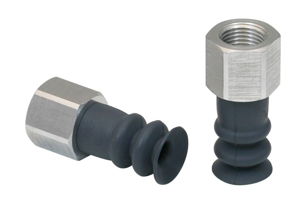 - Круглая, сильфонная присоска с 2,5 гофра для перемещения чрезвычайно чувствительных заготовок (оптимальный демпфирующий эффект)