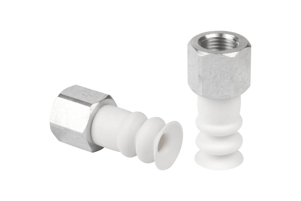 - Круглая, сильфонная присоска с 2,5 гофра для перемещения чрезвычайно чувствительных заготовок (оптимальный демпфирующий эффект)